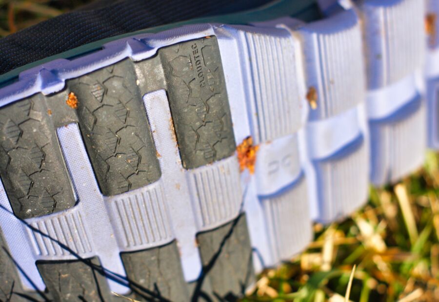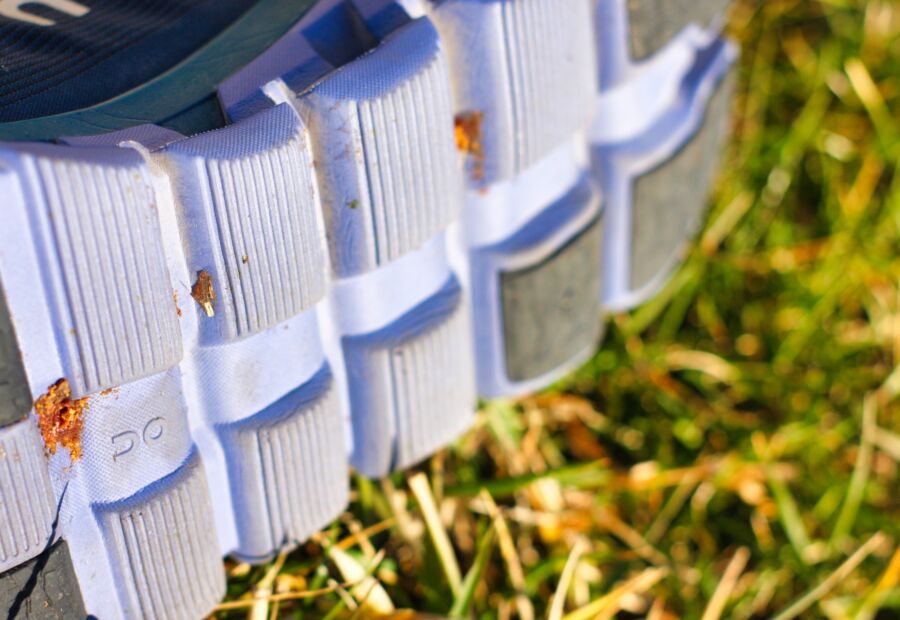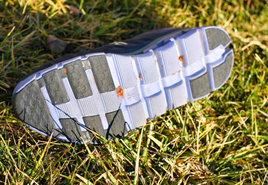 Under the midsole, On put CloudTec rubber pads on the bottom of the cloud pods to increase the traction on road surfaces. You’ll find these rubber pads on the toe and heel of the shoe, but under the midfoot On uses abrasive foam with grooves cut to force grip. This is one place I found the shoe very lacking for my personal running style.
