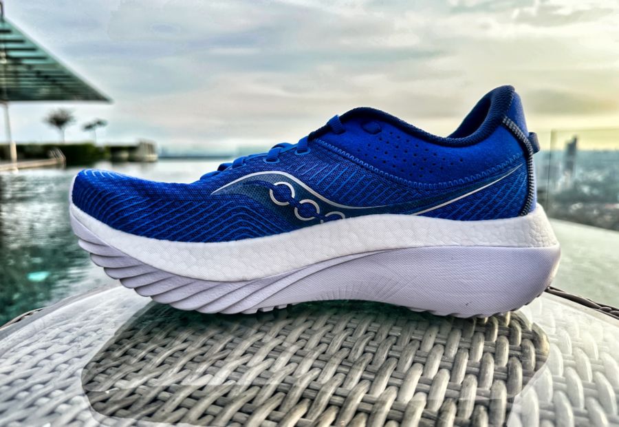 The Kinvara Pro utilises 3 of Saucony’s midsole foams: PWRRUN, PWRRUN and PWRRUN PB yet the ride still feels cohesive and balanced. The sockliner is made of PWRRUN+ which provides a layer of squishiness directly under your feet. Underneath the sockliner is PWRRUN PB, a Peba foam which is energetic and cushioned. Lastly, there’s a thick layer of firm, PWRRUN EVA foam at the bottom for durability and stability.