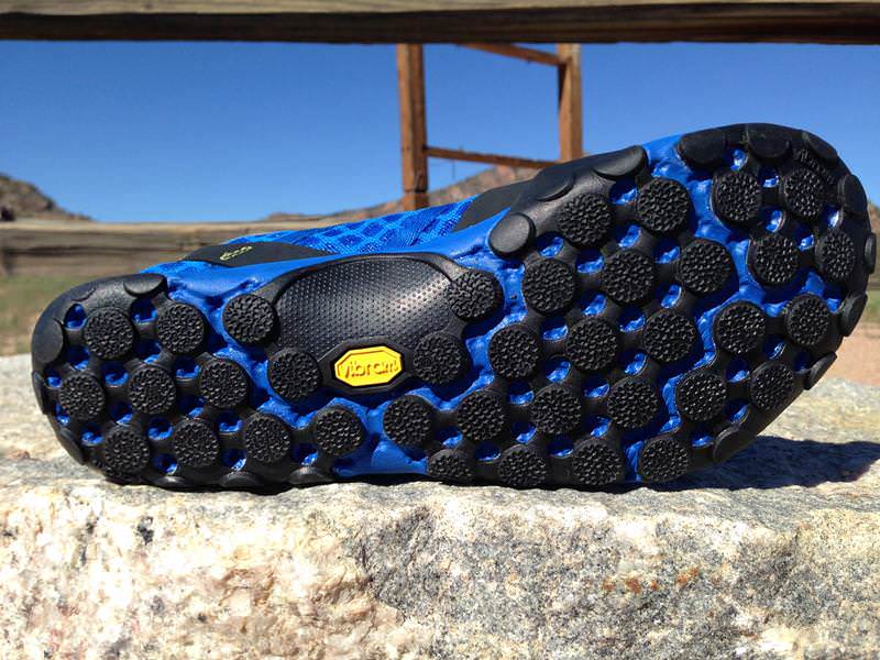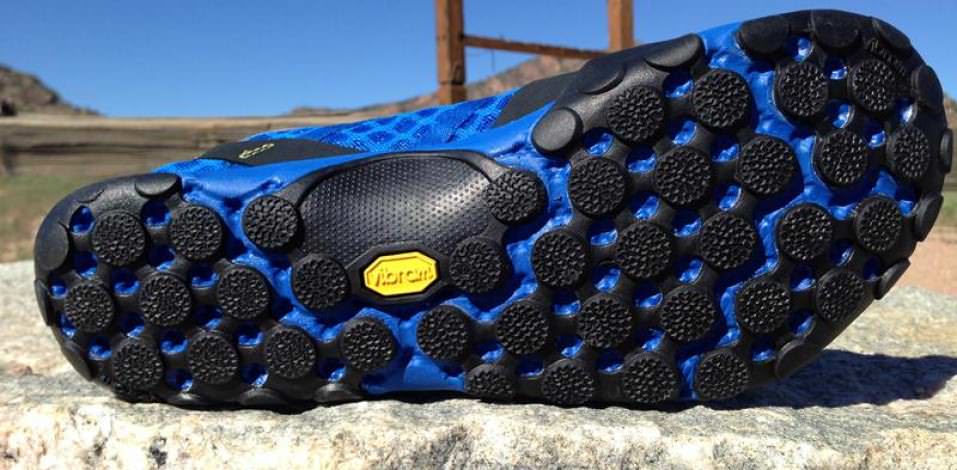 The uniquely lugged Vibram outsole of the Minimus 10 is much like the other minimus shoes, and are almost identical to the Minimus trail. The outsole rises up in three separate points one at the heel and either side of the ball of the foot. These projections provide some structure to the shoe.