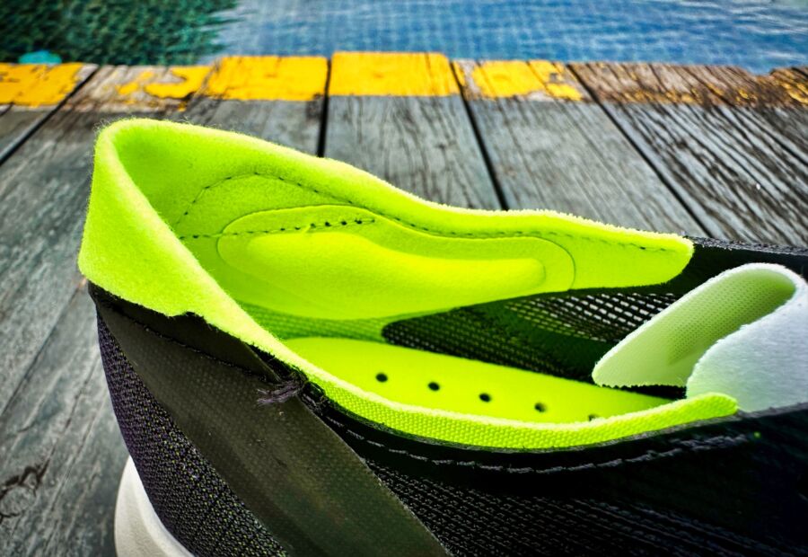 The fit is true to size but if you have flat feet, you might consider going up a half size for the extra midfoot width. It has a normal forefoot with a very narrow midfoot and heel. This racer is one that’s not suitable for wide feet or sensitive arches.