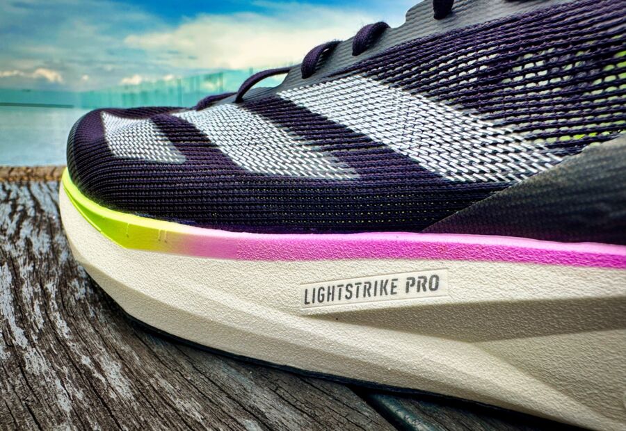 You should also be warned that even though it uses Lightstrike Pro, Adidas’ premier racing foam, the ride still feels flat, hence the name racing flat. There isn’t as much bounce or energy return as thicker stacked racers like the Adios Pro and Prime X and it doesn’t have a rocker to speed up transitions either.