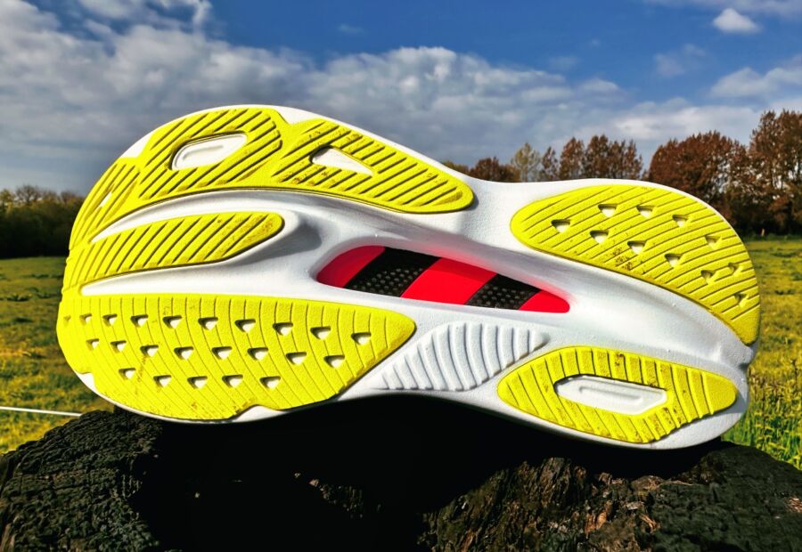 The outsole takes inspiration from the Bondi 8 but it has even more rubber coverage on the outer lateral heel and the medial side of the forefoot.