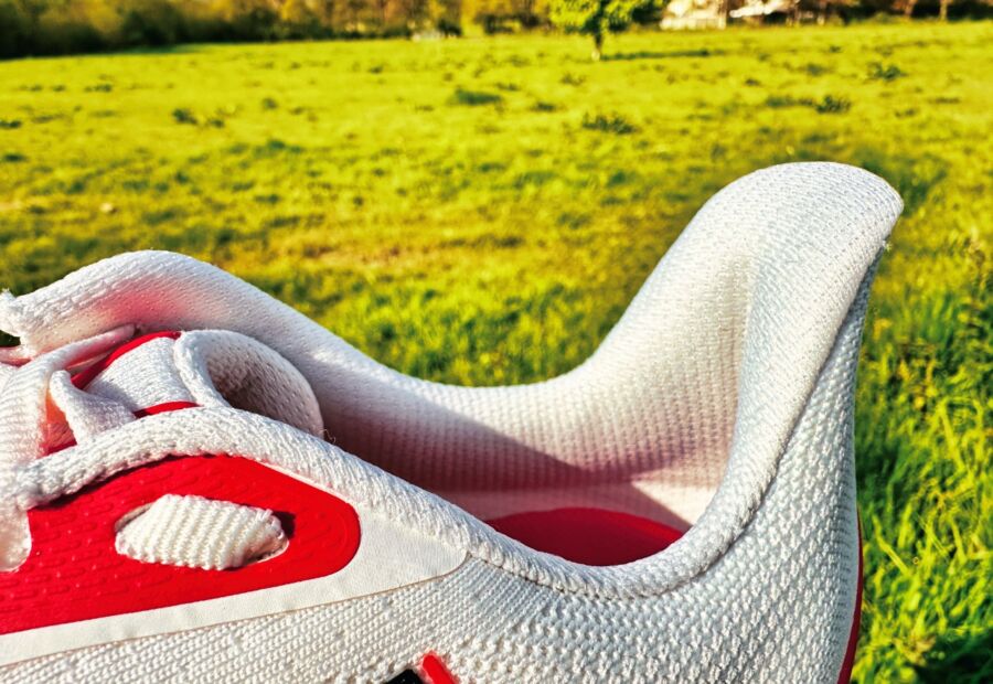 It’s a very built-up, plush upper which was designed with comfort in mind. It’s made from flat knit which is soft but not very breathable. There are both internal and external heel counters for maximum support and the heel counter flares away from your leg so as not to irritate it. Heel lockdown is good but I have to use a runner’s knot.