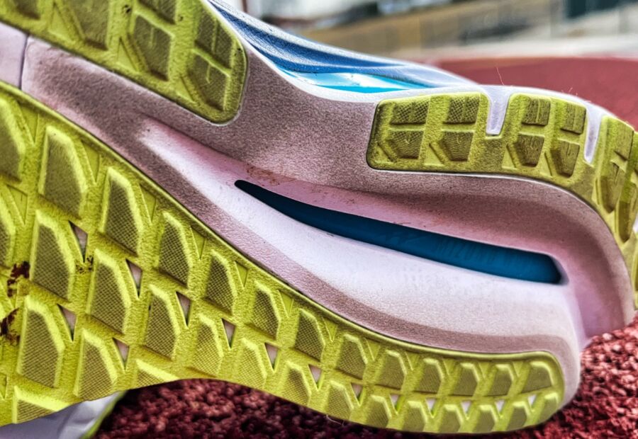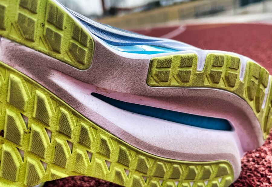 This plate is inserted under the heel and through the midfoot following the natural anatomical curve of the foot to give more support and balance during your run. However, there was not much bounce to the cushion at any point of any run I did in them.