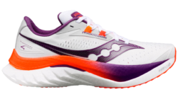 The heel support and solid feel upon foot-plant stand out as key features of this shoe. A narrow fit makes the “wide” option necessary for many runners.